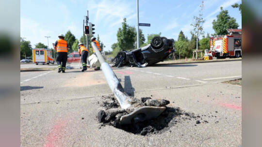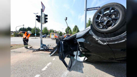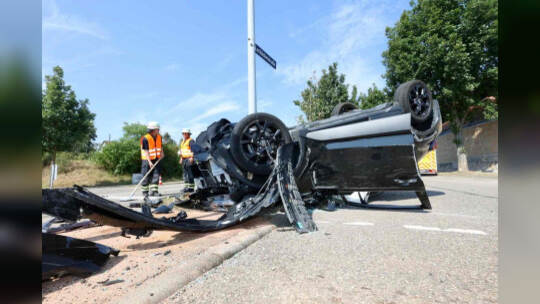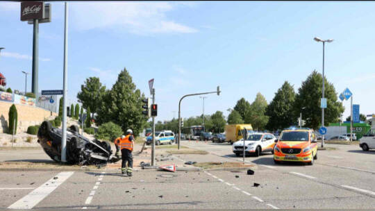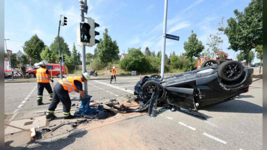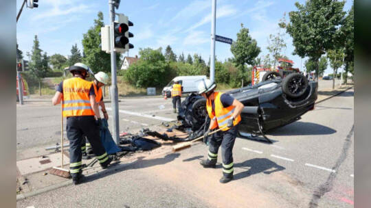 Auto überschlägt sich in Pforzheim: Zwei Verletzte