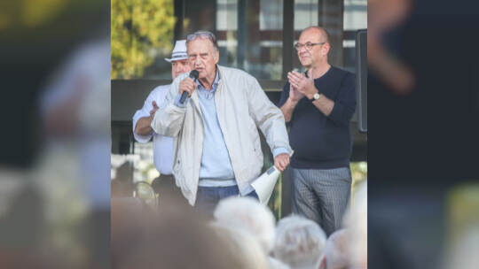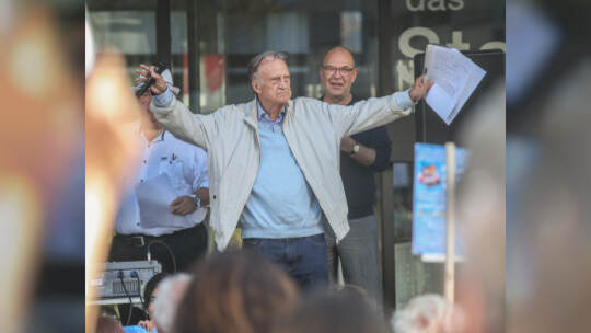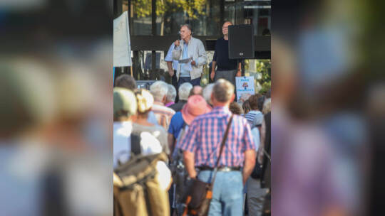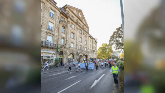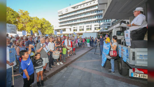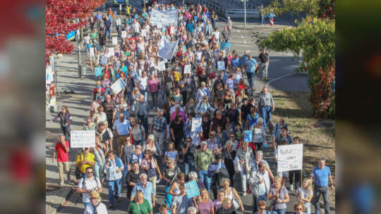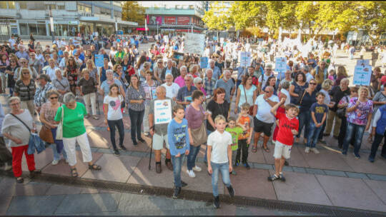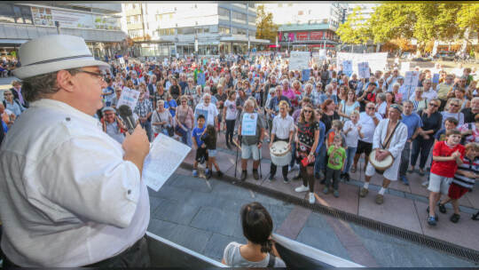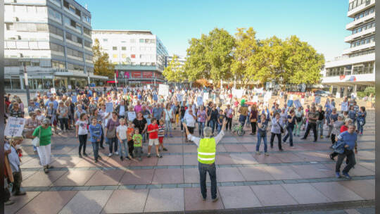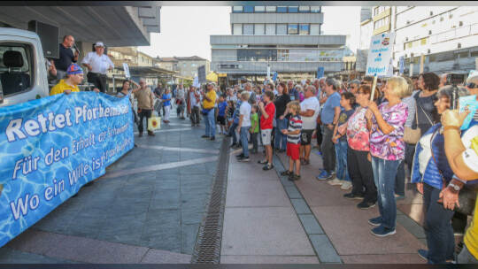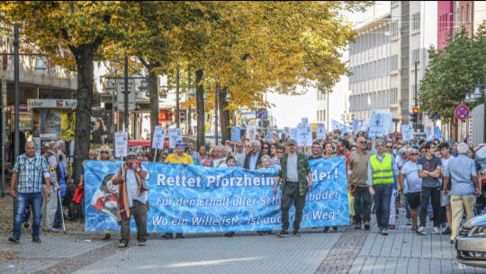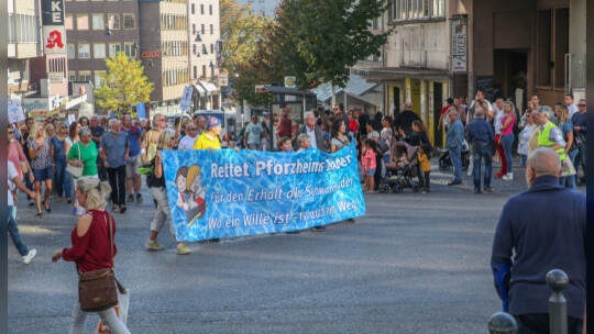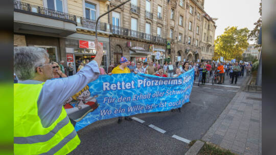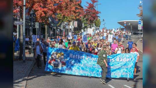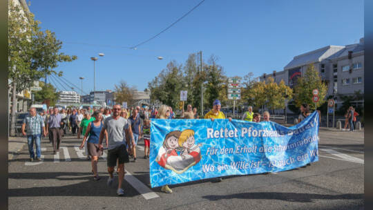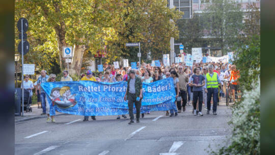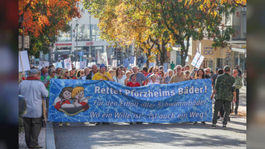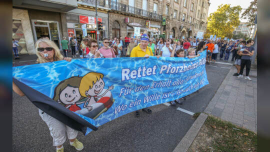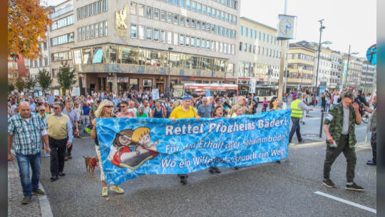 Hunderte Menschen haben am Samstag Nachmittag in der Pforzheimer Innenstadt für den Erhalt aller Pforzheimer Bäder demonstriert.