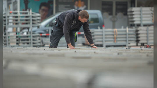 Seit Dienstag ist ein siebenkäpfiges Team dabei, die Fläche für "City on Ice" vor dem Pforzheimer Rathaus aufzubauen. Am 14. November folgt dann die offizielle Eröffnung. Fotos: Meyer