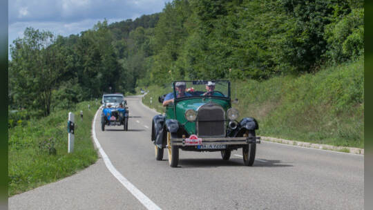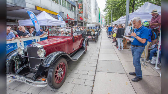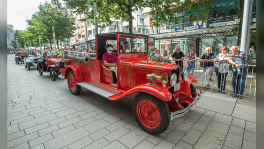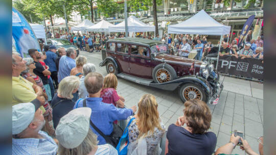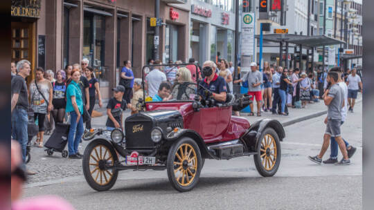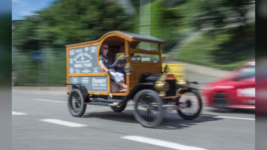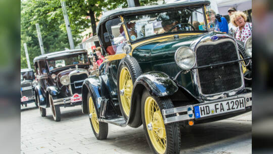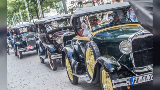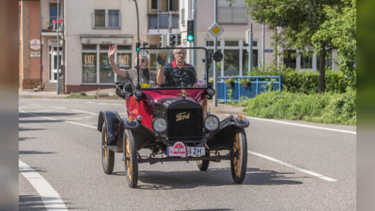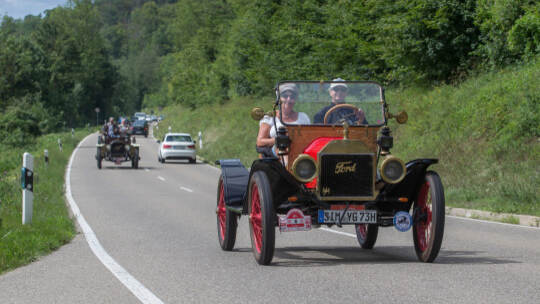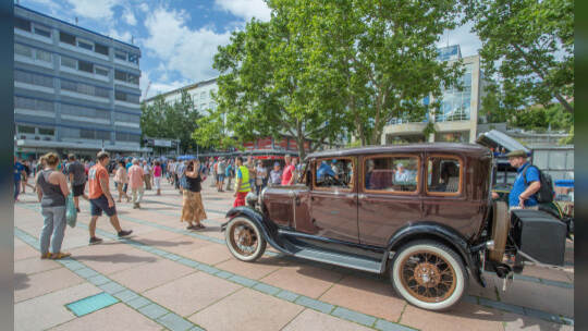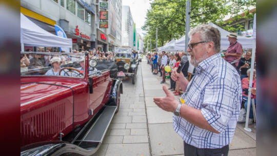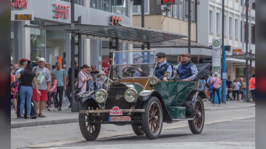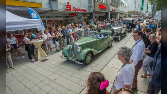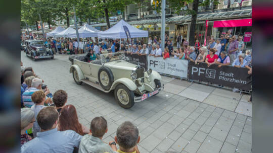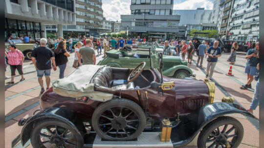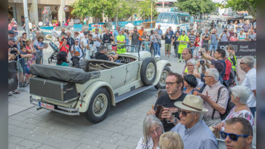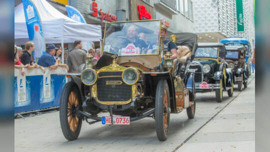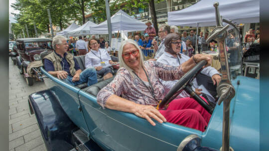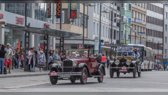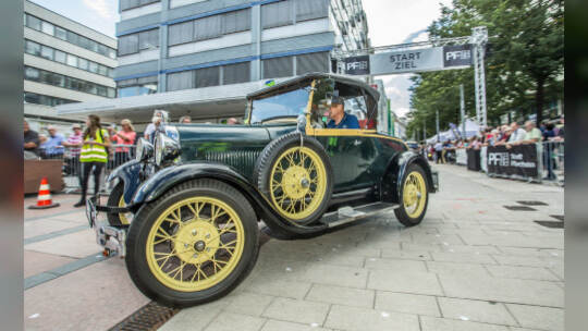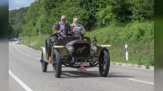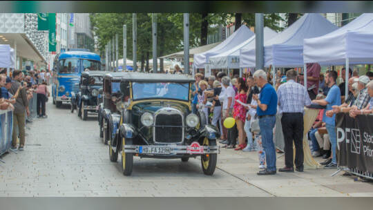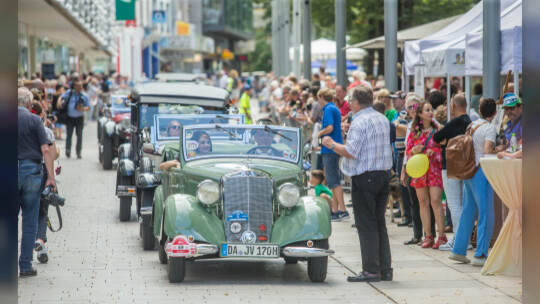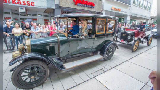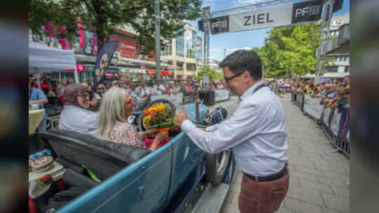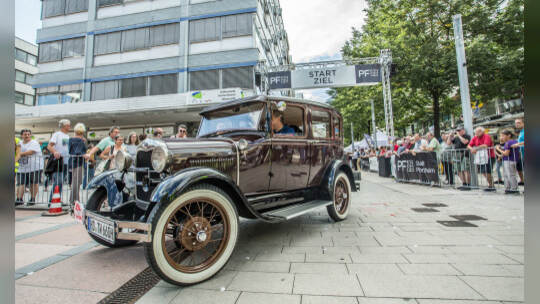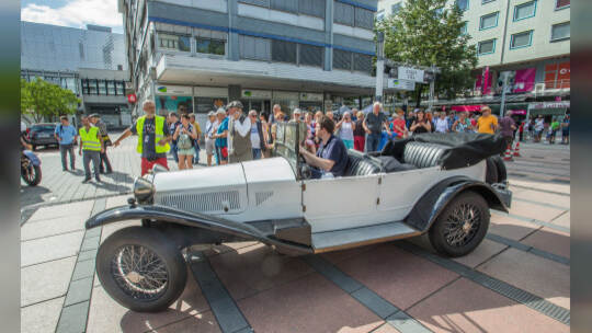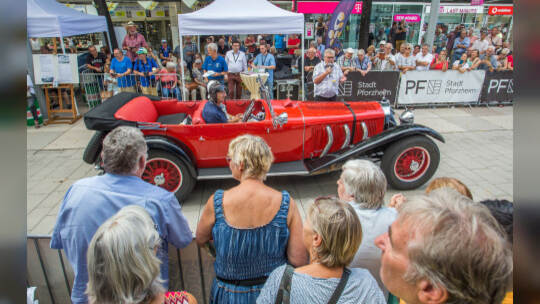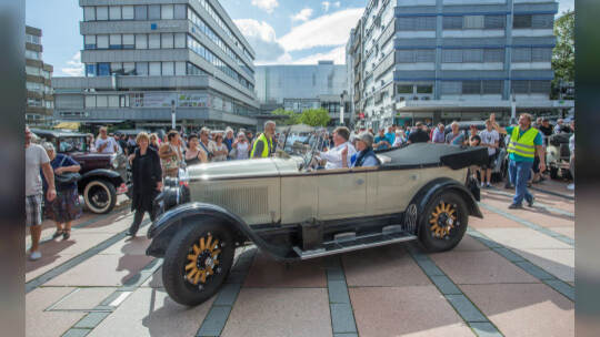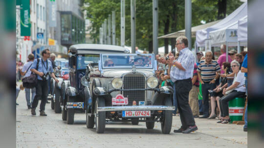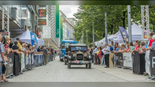Nach 100 Kilometern ist das Etappenziel der Bertha-Benz Fahrt von Mannheim nach Pforzheim geschafft. 72 historische Fahrzeuge rollen durch die Pforzheimer Innenstandt und unter den Fahrern die Urenkelin von Bertha Benz.