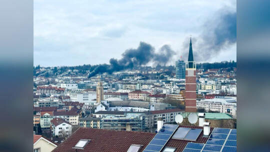 Brand in Pforzheim: Rauchsäule kilometerweit zu sehen