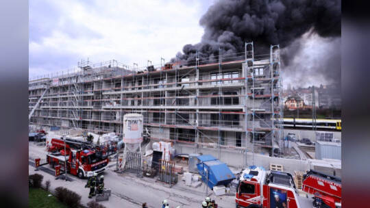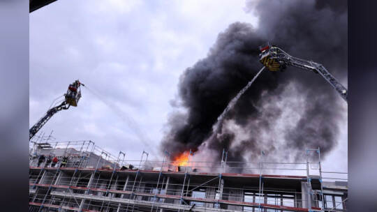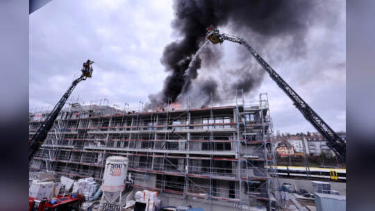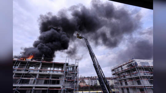 Am Mittwochnachmittag ist ein Feuer auf dem Dach eines Rohbaus in Pforzheim ausgebrochen. Die Rauchsäule war kilometerweit über der Stadt zu sehen.