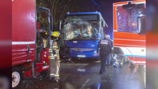 Auf der Industriestraße in Mühlacker ist es am Mittwochabend zu einem Unfall zwischen einem Bus und einem Lkw gekommen. Ersten Informationen zufolge, ist der Bus auf den Lkw frontal aufgefahren.