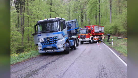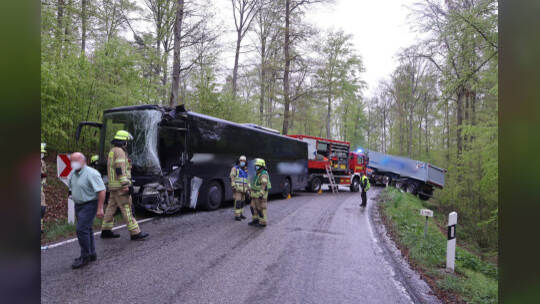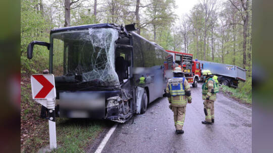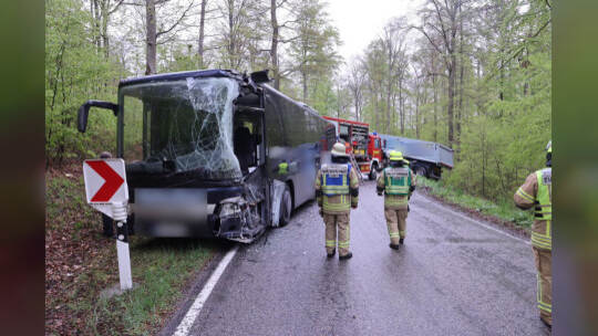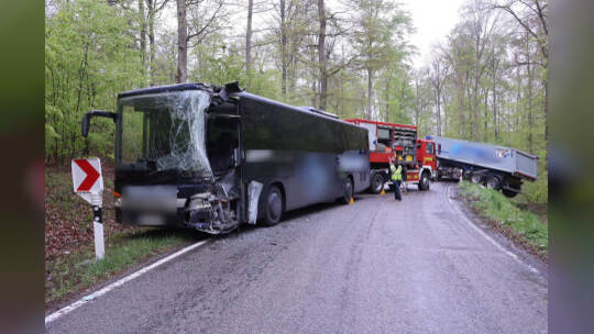 Bus und Lastwagen kollidieren auf der Wiernsheimer Straße (L 1134)