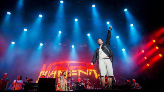 Trotz Regenwetter warteten hunderte Festivalbesucher bei der Karlsruher Open-Air-Musik-Veranstaltung "Das Fest" vor allem auf das Konzert von Deutsch-Rapper Marteria. Das dreitägige Open-Air-Spektakel zieht jährlich Zehntausende von Besuchern an.