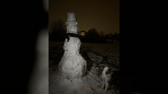 Es hat geschneit, und zwar ordentlich: Während die einen mit ihren tierischen Freunden die Flocken genossen haben, ist bei anderen das innere Kind ausgebrochen. Das Ergebnis: Ein Schneemann, der circa 2,5 Meter groß ist.