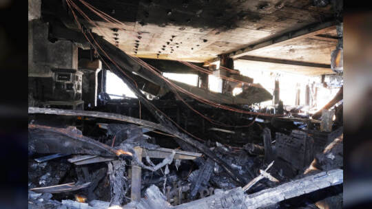 Das Drei-Sterne-Restaurant «Schwarzwaldstube» in Baiersbronn ist bei einem Brand in der Nacht zu Sonntag nach Angaben der Feuerwehr komplett zerstört worden. Fotos: dpa