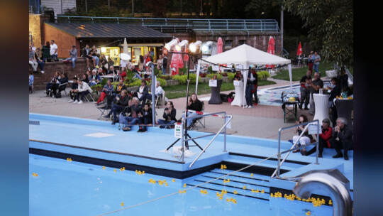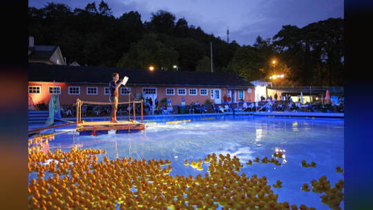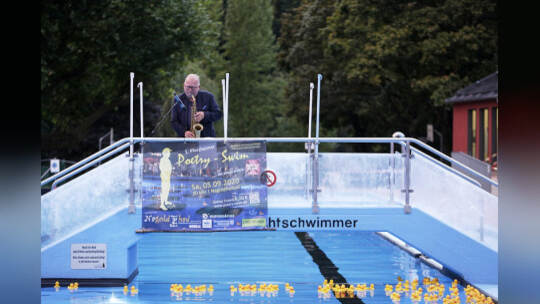 Erstes Poetry Swim im Nagoldfreibad in Pforzheim