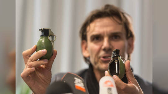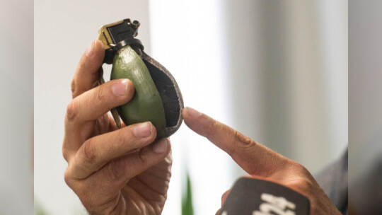 Experten untersuchen Handgranate nach Attacke auf Flüchtlingsheim