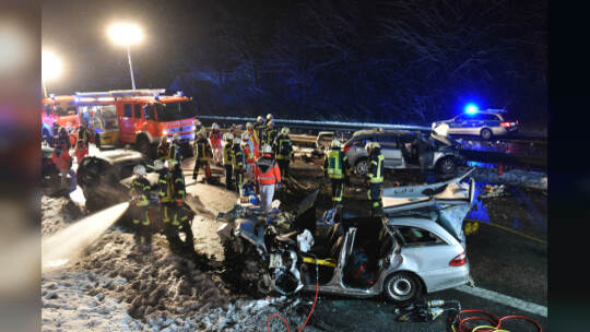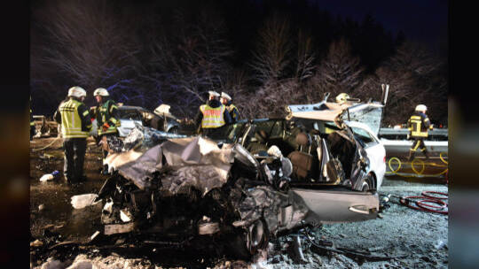 An der Unfallstelle bot sich nach dem Zusammenstoß ein Bild der Verwüstung, zwei Autos waren komplett zerstört. Zwei Menschen starben, mehrere wurden verletzt.