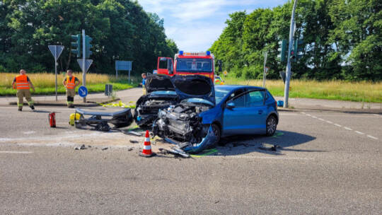 Frontalzusammenstoß auf B10-Kreuzung bei Mühlhausen