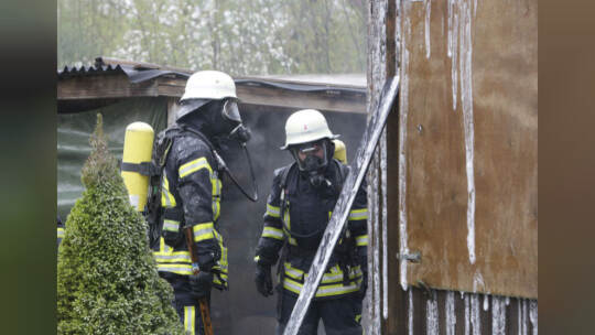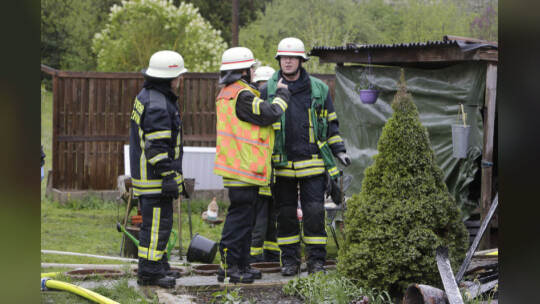 Eine Gartenhütte ist am Ostersonntag an der Eisinger Landstraße in Brand geraten. Fotos: Keller