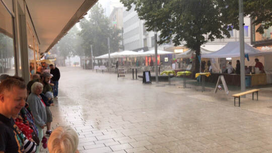 Gewitter lässt Stimmung bei Fußgängerzonen-Eröffnung platzen