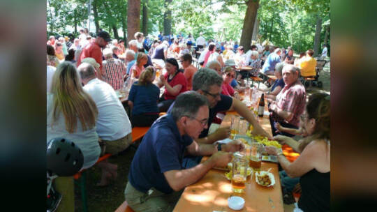 Bei herrlichem Wetter bis 30 Grad, konnte an Fronleichnam der Musikverein Göbrichen unter schattenspendenden mächtigen alten Eichen nach zwei Jahren Corona-Pause wieder sein beliebtes Waldfest vor der Büchighalle veranstalten.