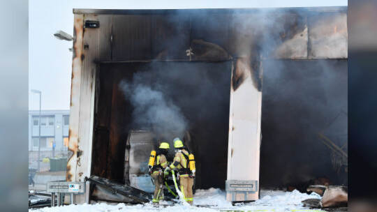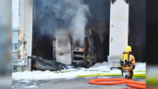Auch Stunden, nachdem das Feuer in der Akkufabrik in Ölbronn-Dürrn ausgebrochen ist, ist die Feuerwehr noch immer mit der Bekämpfung der Flammen beschäftigt. Fotos: dpa