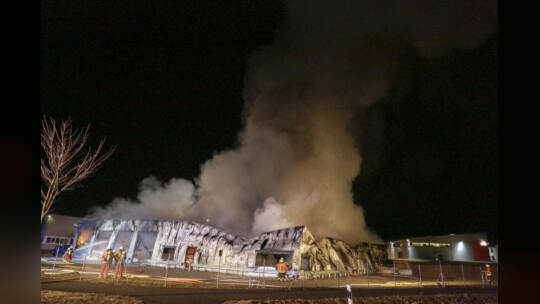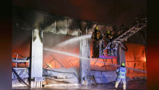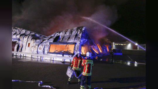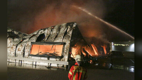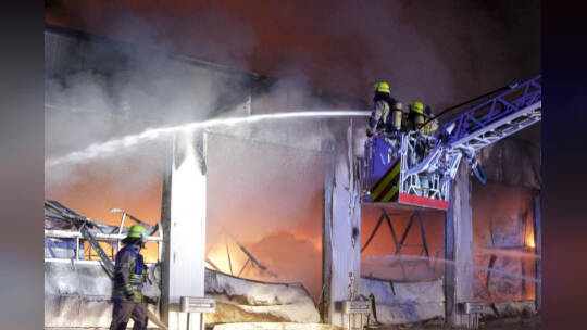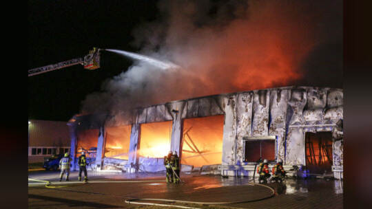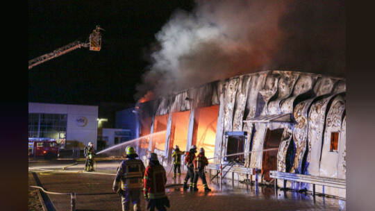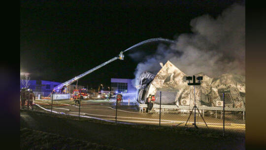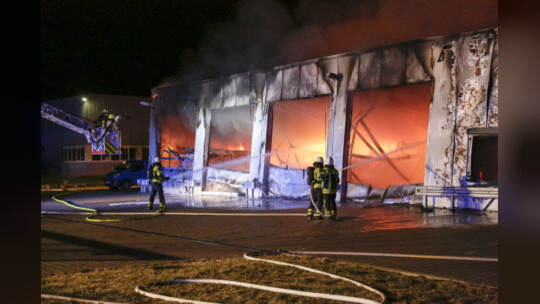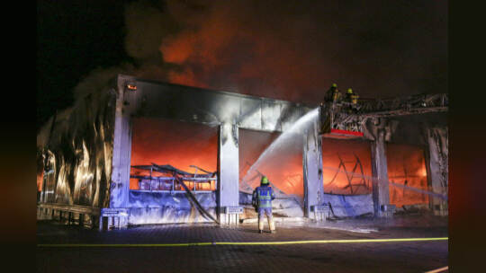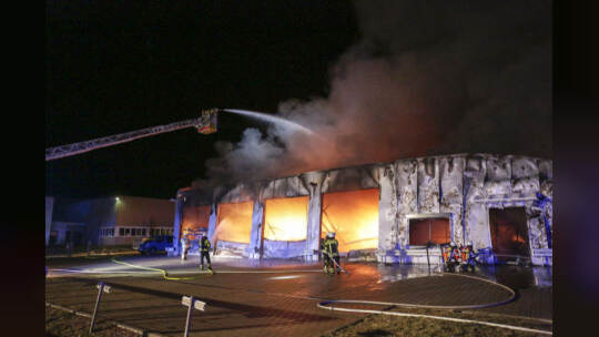 Großbrand zerstört Lagerhalle in Ölbronn-Dürrn