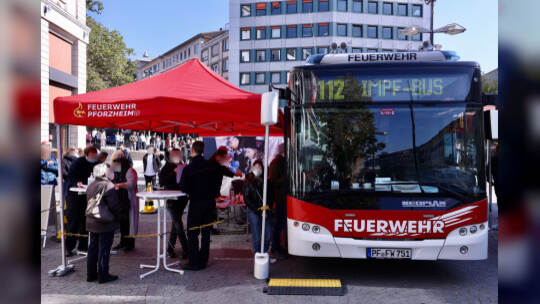 Am Samstag herrschte reger Andrang beim Impfbus in der Pforzheimer Innenstadt. Zahlreiche Menschen waren gekommen, um sich ihre Corona-Impfung abzuholen.