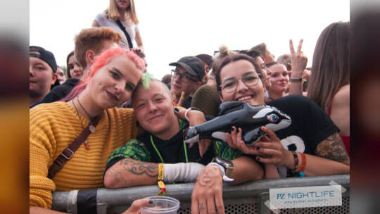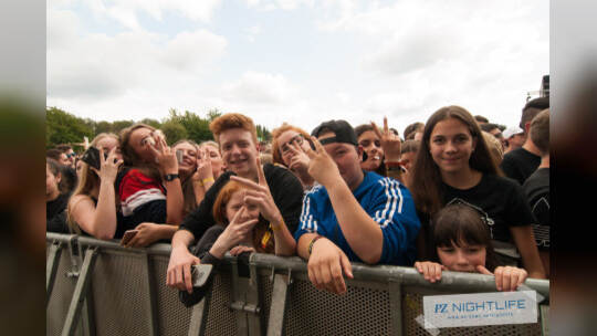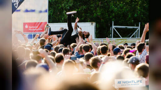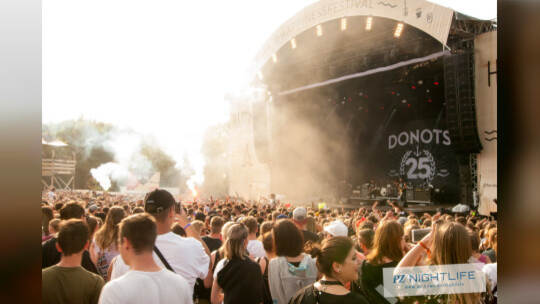 Bilder von "Smile and Burn", "Nura", "Donots", RIN", "SDP" und "AnnenMayKantereit" sowie Festivalbesuchern.