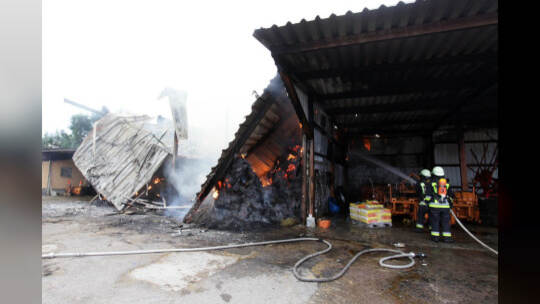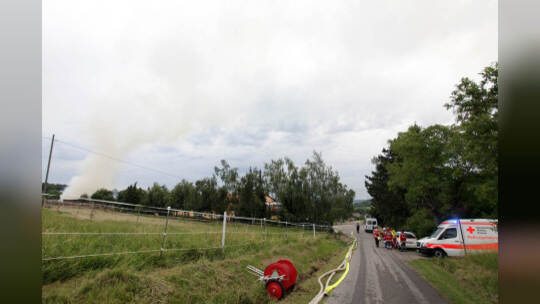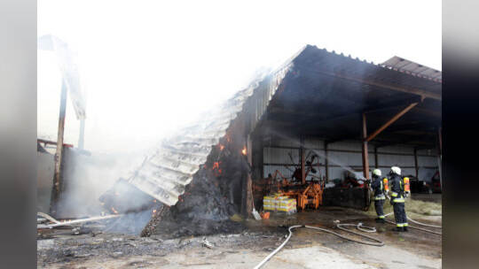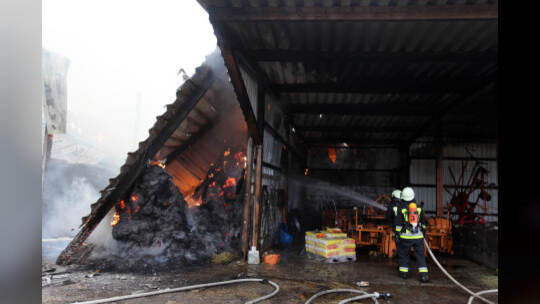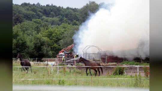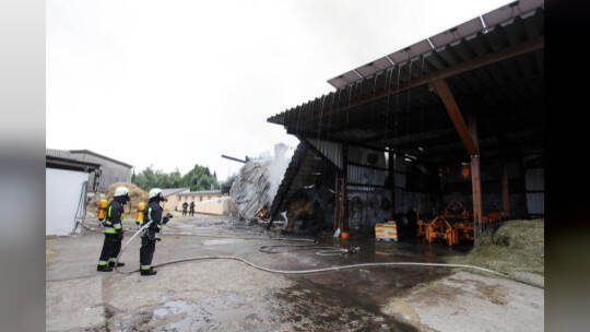 Heuballenlager brennt am Aussiedlerhof