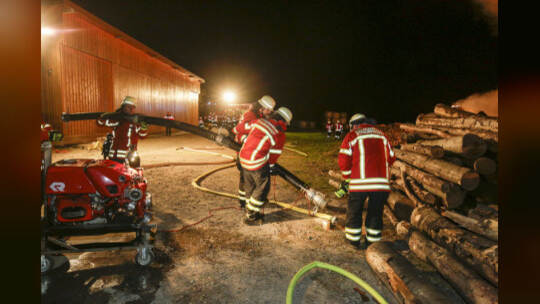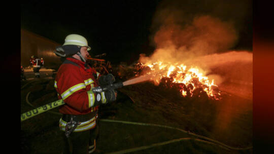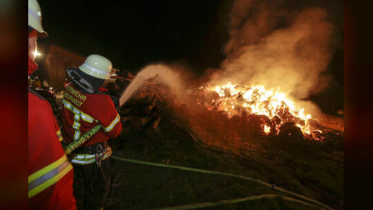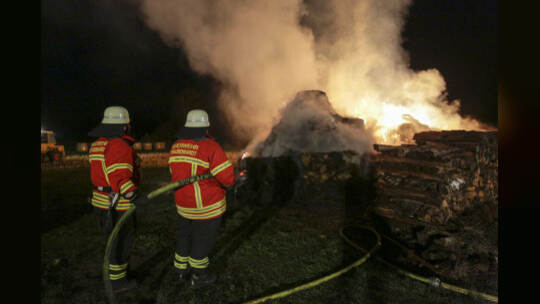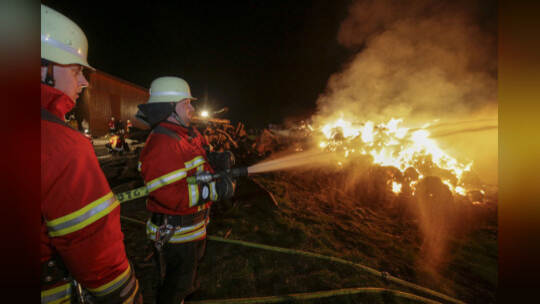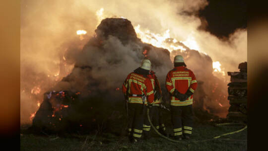 Ein Großaufgebot von Einsatzkräften war am Sonntagabend nötig, um ein brennendes Heulager in Schwann zu löschen. Nun ermittelt die Polizei wegen Brandstiftung.