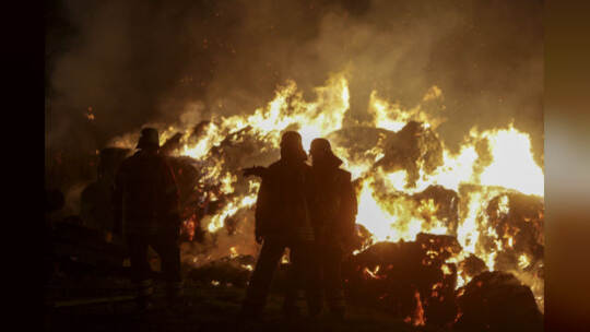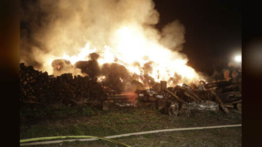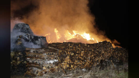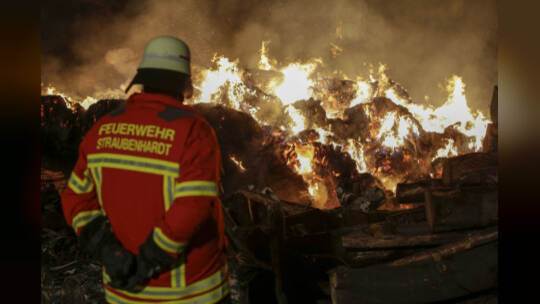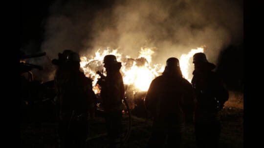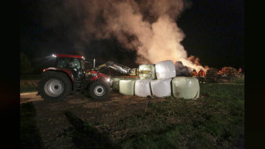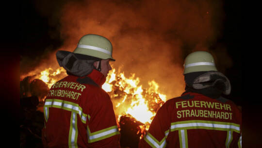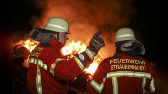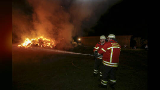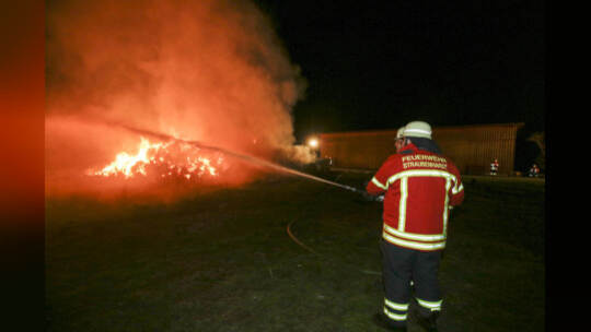 In einem Heulager im Straubenhardter Ortsteil Schwann gerieten am Sonntagabend rund 150 Heu- und Strohballen in Brand.