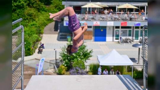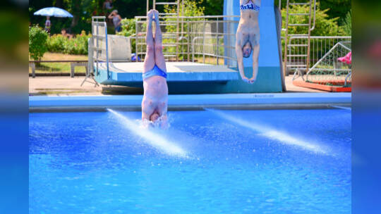 In Bildern: Erster Arschbombenwettbewerb im Pforzheimer Wartbergbad