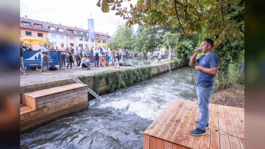 Endlich ist sie da: Die weltweit einzige Flusswelle mit Unterwasserbeleuchtung ist am Freitag in Pforzheim offiziell eröffnet worden.