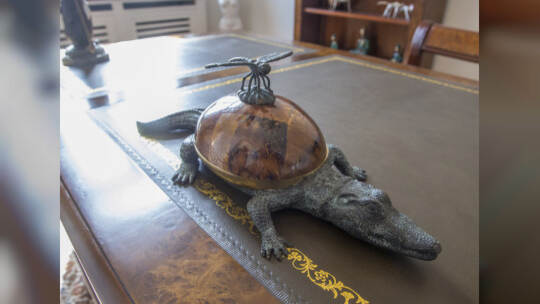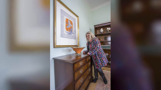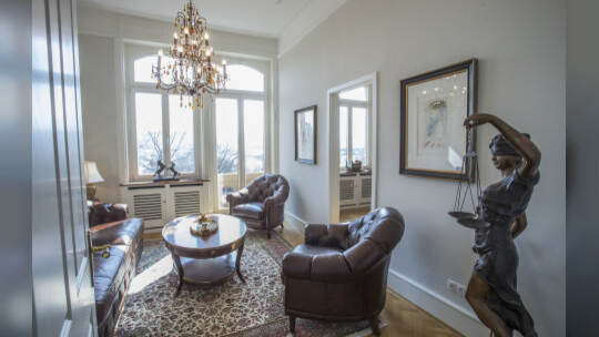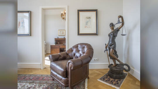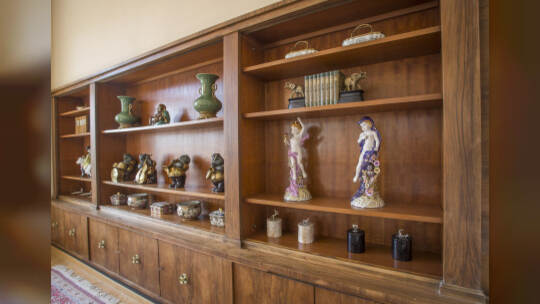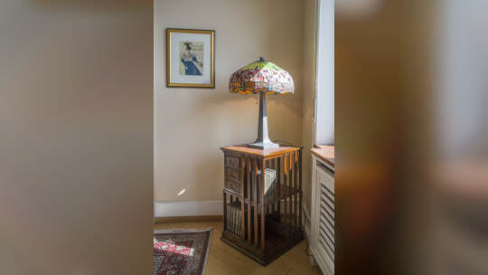 In einer Villa an der Kaiser-Wilhelm-Straße in Pforzheim stehen Vitrinen, Schreibtische, Lampen und Kunst zum Verkauf.