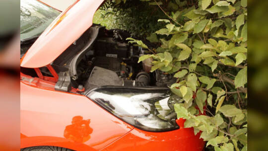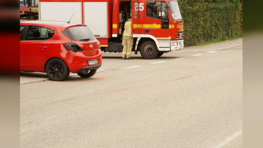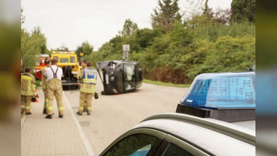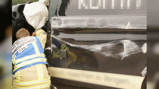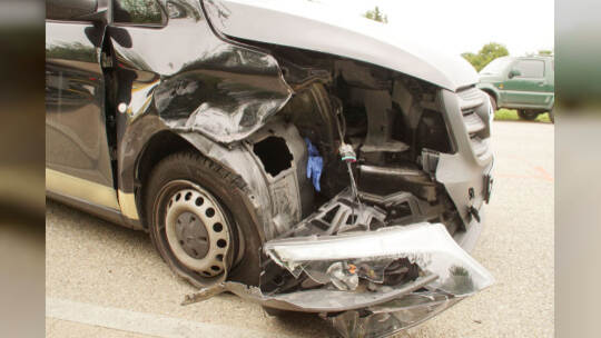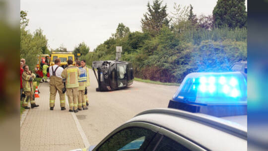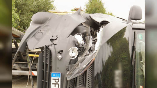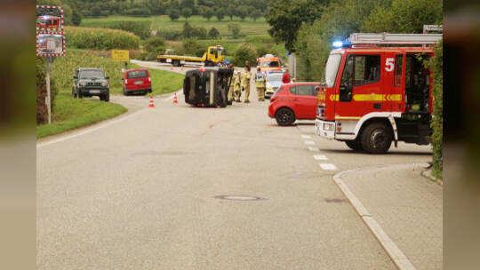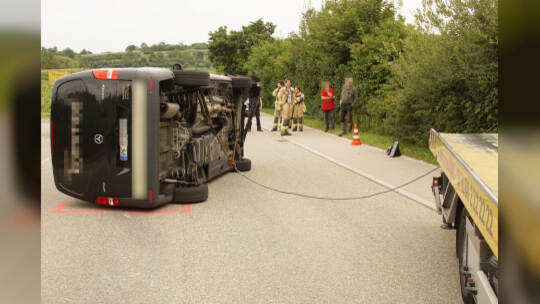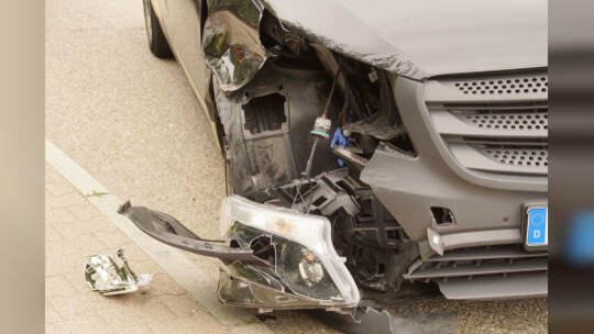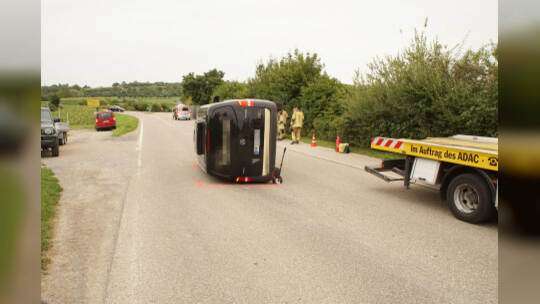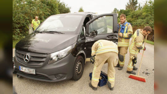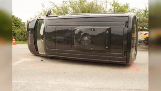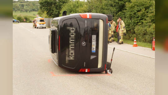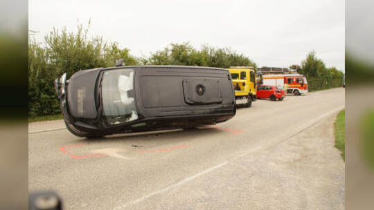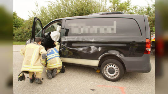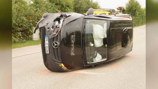 Kleintransporter kippt nach Zusammenprall auf die Seite