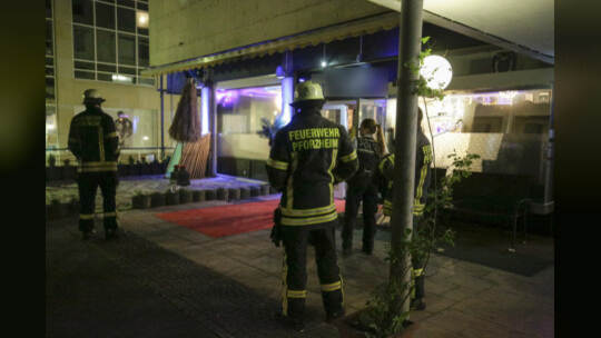 Eigentlich war die Polizei am Donnerstagabend, 10. Mai, wegen einer gewalttätigen Auseinandersetzung in eine Shisha-Bar am Schloßberg in Pforzheim geeilt. Die von der Polizei alarmierte Feuerwehr hatte dann dort erhöhte Kohlenmonoxid-Werte festgestellt. Die Lokalität wurde geräumt und gelüftet. Fotos: Tilo Keller