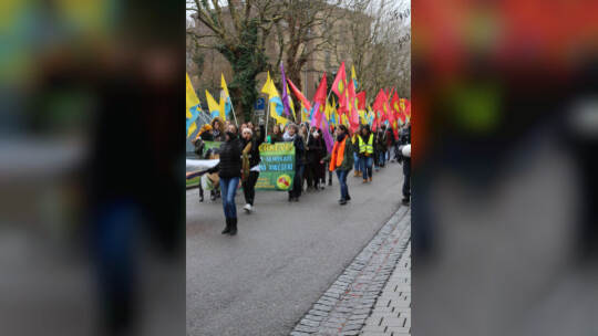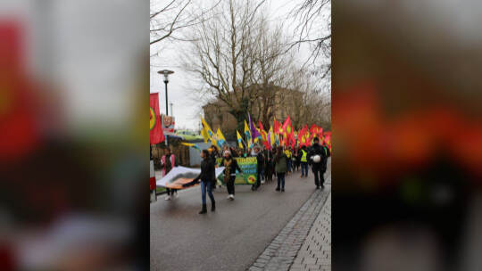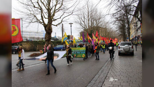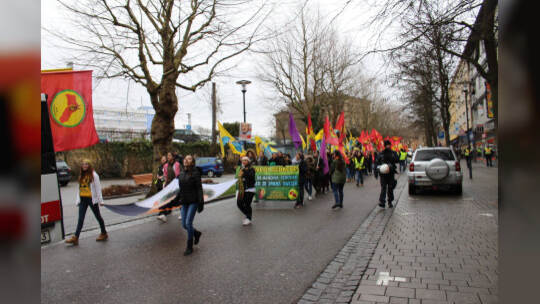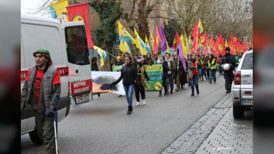 Kurden marschieren durch die Bahnhofstraße in Mühlacker. Fotos: Schierling