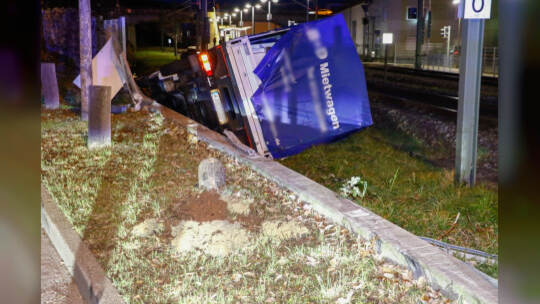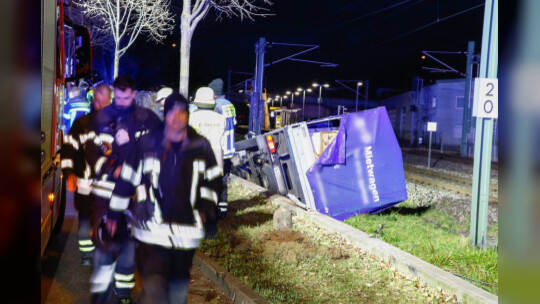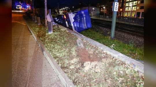 Am Samstagabend ist in Pforzheim ein Lastwagen auf die Gleise in der Kelterstraße gekommen und ungekippt.