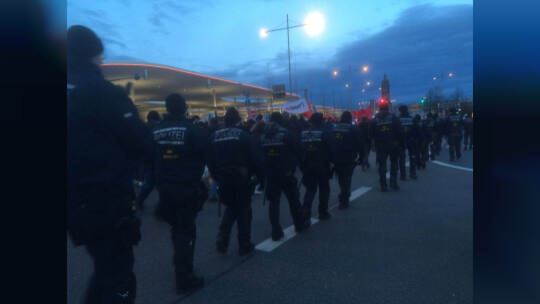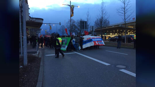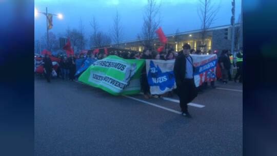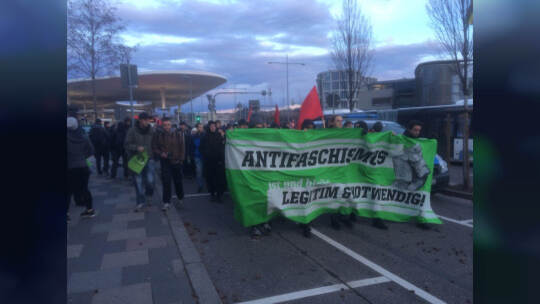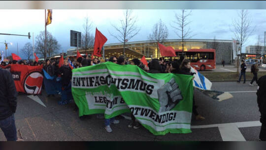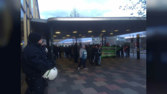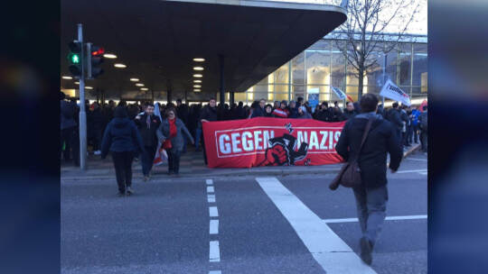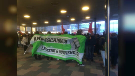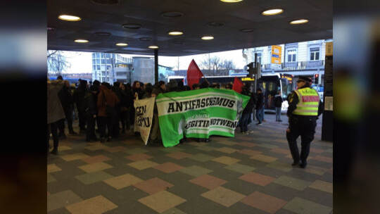 Linke Demonstranten versammeln sich vor dem HauptbahnhofFotos: Türschmann, Lorch-Gesternmaier23. Februar 2017