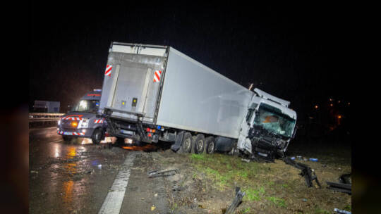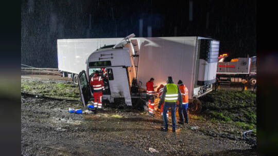 Lkw kommt auf A8 ins Schleudern und knallt gegen Leitplanke