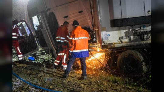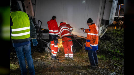 Ein Lkw mit Auflieger ist in der Nacht auf Montag zwischen den Anschlussstellen Pforzheim-Nord und -Ost auf regennasser Fahrbahn ins Schleudern gekommen - und prallte schließlich links gegen die Leitplanke. Fotos: 7aktuell.de | Nils Reeh