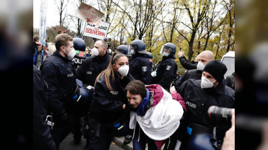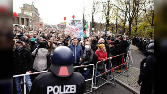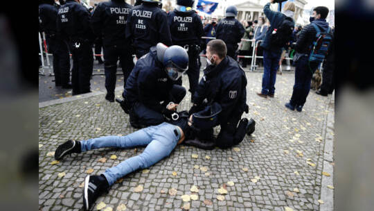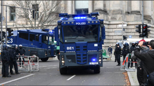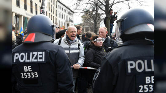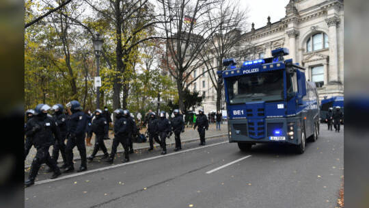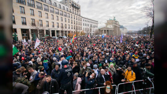 Die Polizei schätzt die Teilnehmerzahl bei den Demonstrationen gegen die Corona-Politik der Bundesregierung in Berlin-Mitte auf mehrere Tausend.
