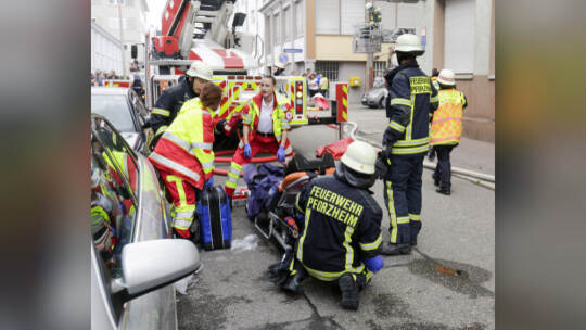 Die Feuerwehr war mit 35 Kräften im Einsatz, sie mussten fünf Personen aus dem Haus retten. Tilo KellerDie Feuerwehr war mit einem Großaufgebot am Unglücksort. Tilo KellerDas Feuer war in einer Wohnung im ersten Stock ausgebrochen. Tilo KellerMehrere Verletzte nach Wohnungsbrand in PforzheimFotos: Keller10. Juni 2019