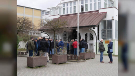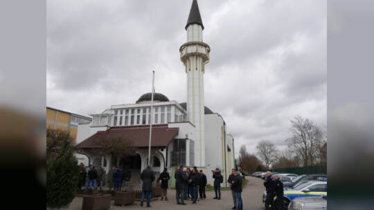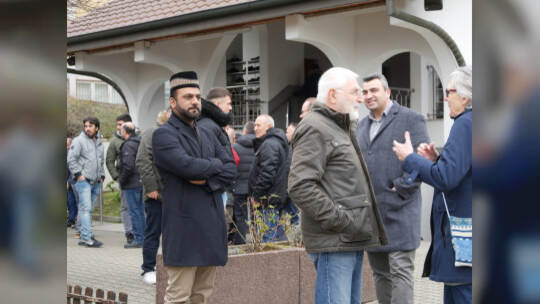 In Scharen strömten die überwiegend türkischstämmigen Gläubigen am Freitag zur Fatih-Moschee. Sie sind an diesem Tag nicht die einzigen Gäste des Gotteshauses – auch Vertreter des Pforzheimer Rats der Religionen, der katholische wie evangelische Kirche, jüdische Gemeinde, muslimische Hauptrichtungen, Ahmadiyya-Muslime, Aleviten und Yeziden umfasst, sind vor Ort. Alle großen Religionen der Stadt sind vertreten. Ein Akt der Solidarität. Fotos: TV-BW