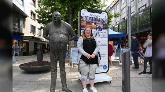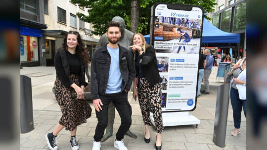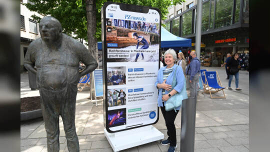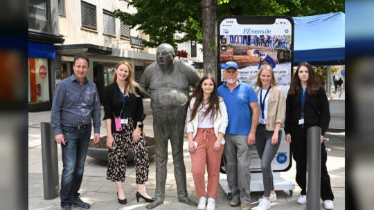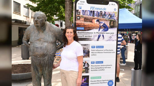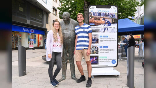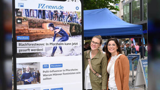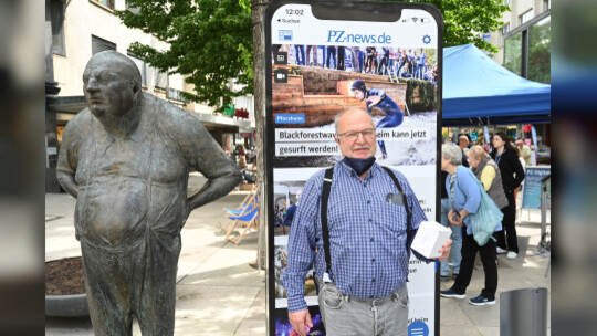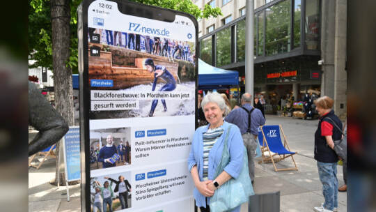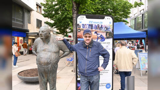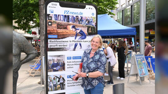Am Freitagmittag konnten die Menschen in der Pforzheimer City tolle Preise bei der Foto-Aktion von PZ-news gewinnen – und obendrein ein cooles Foto mit einer lebensgroßen Handy-Attrappe schießen.