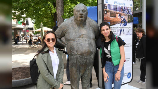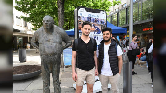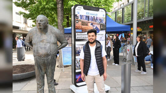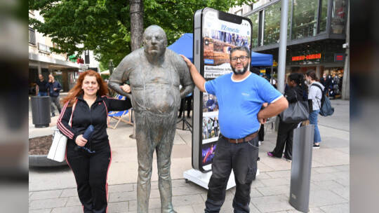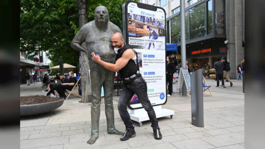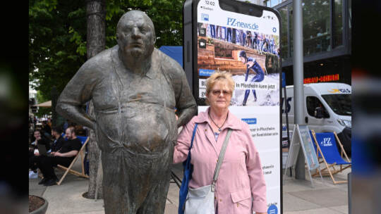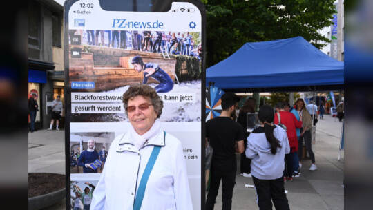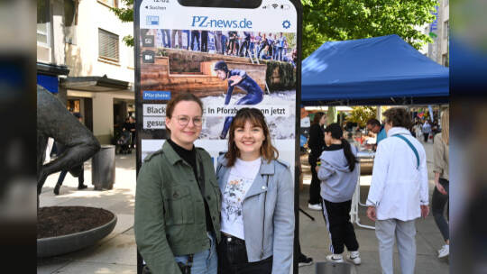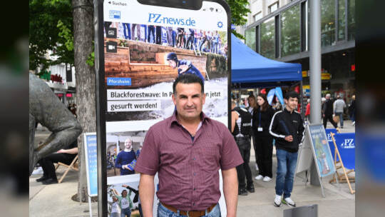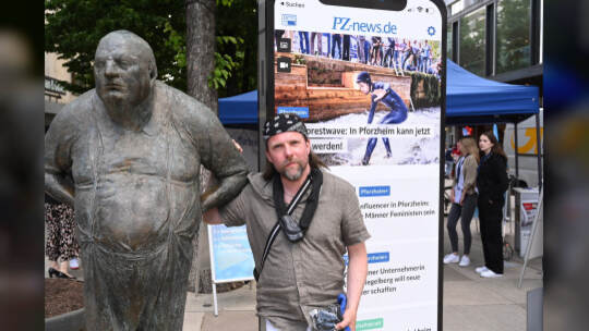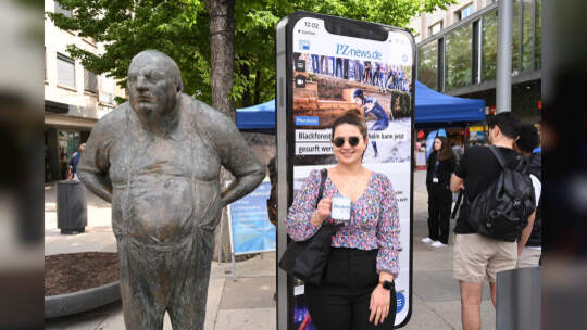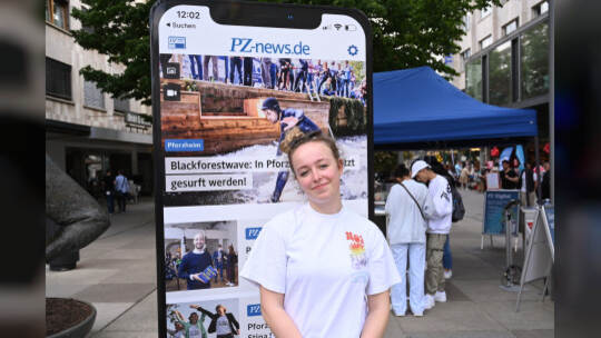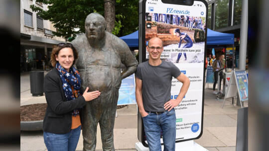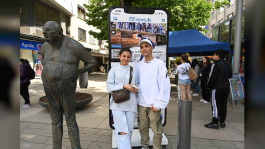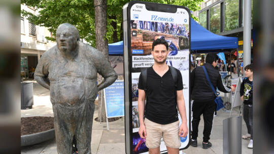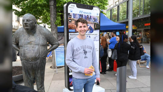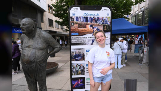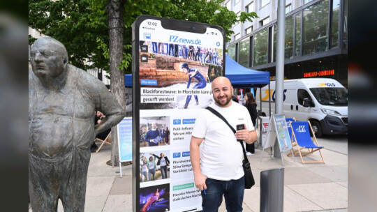 Am Freitagmittag konnten die Menschen in der Pforzheimer City tolle Preise bei der Foto-Aktion von PZ-news gewinnen – und obendrein ein cooles Foto mit einer lebensgroßen Handy-Attrappe schießen.