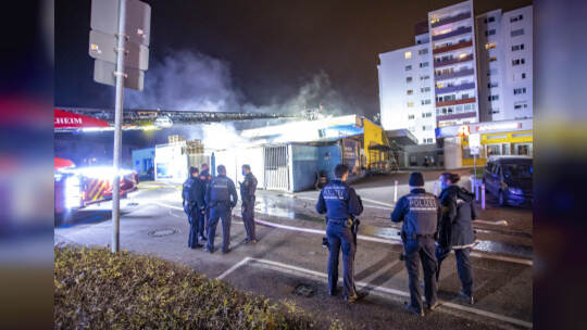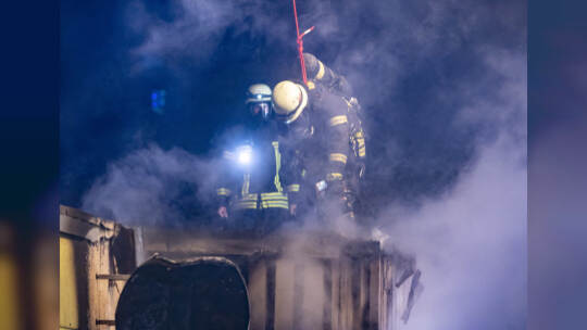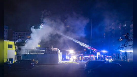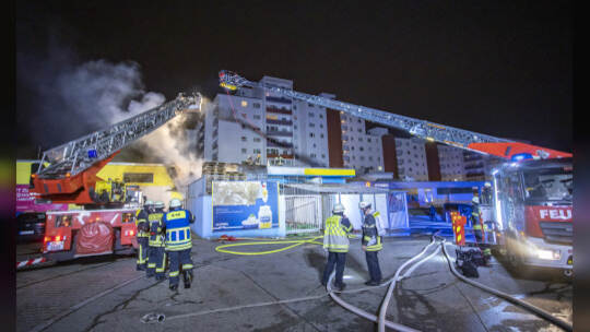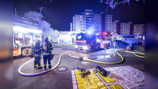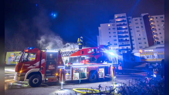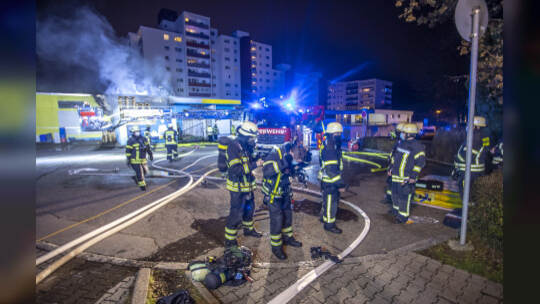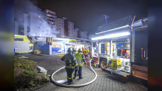 Papierlager eines Supermarktes brennt auf dem Haidach