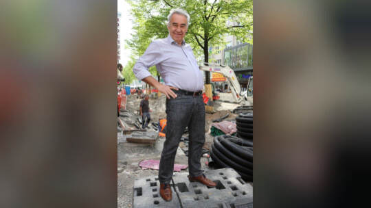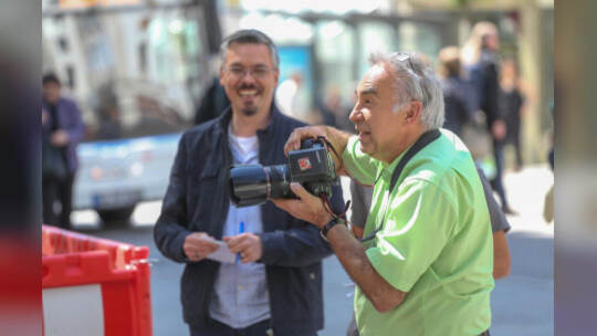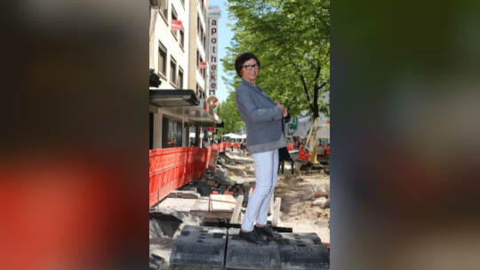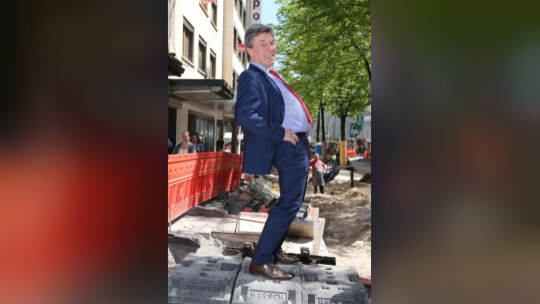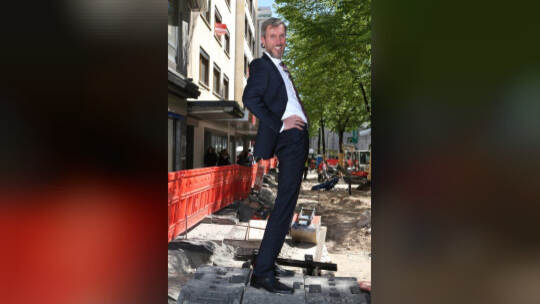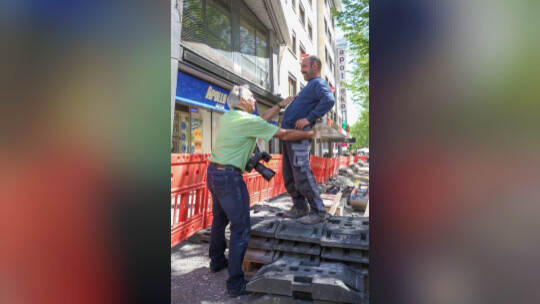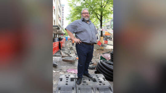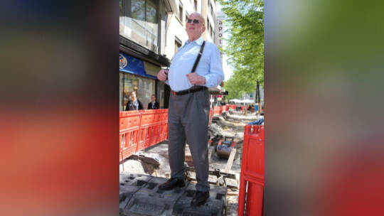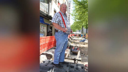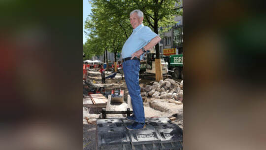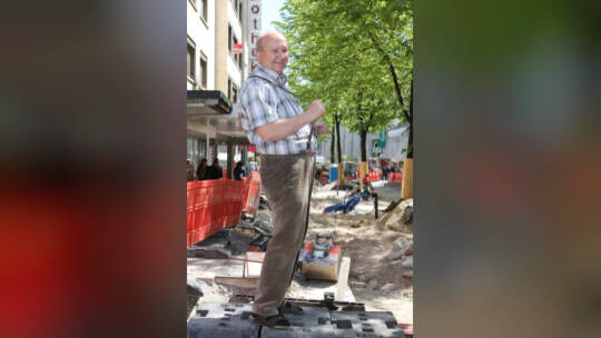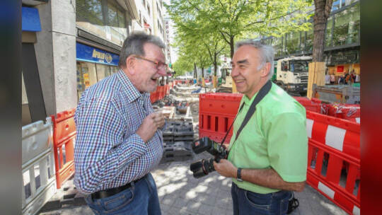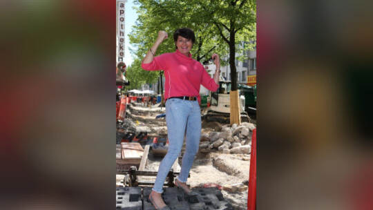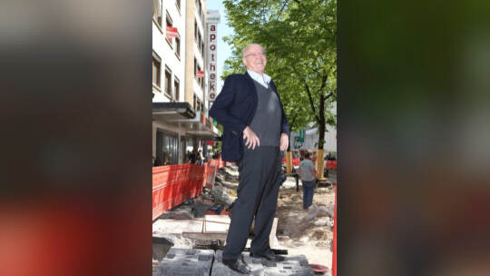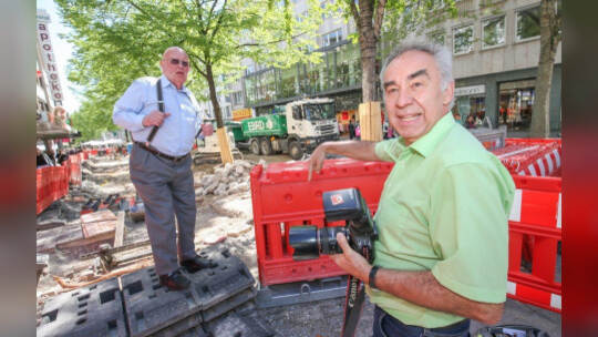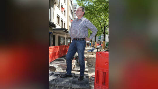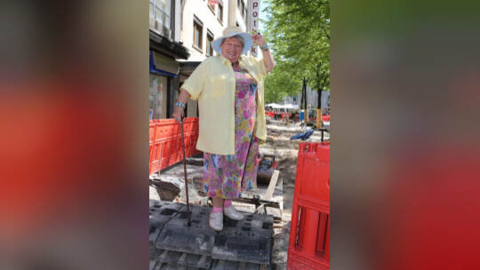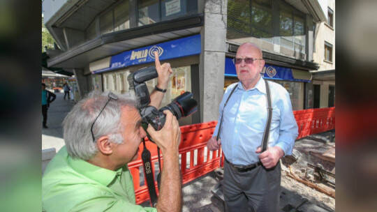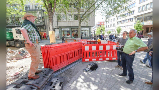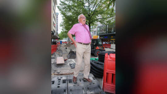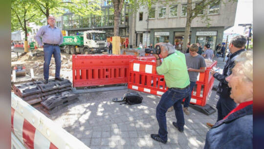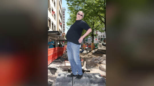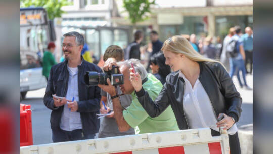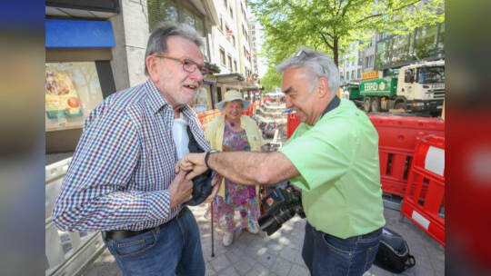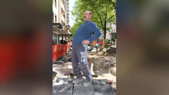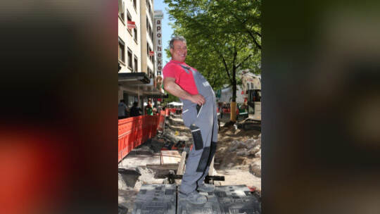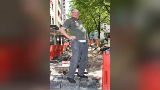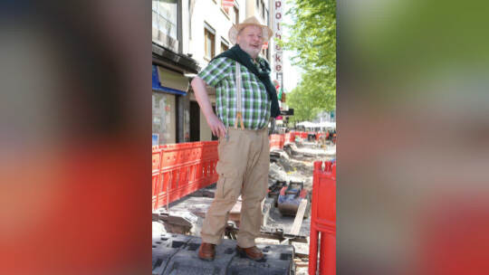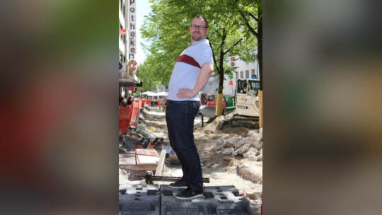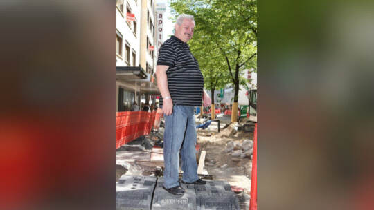Passanten mimen den "Dicken" in der Fußgängerzone