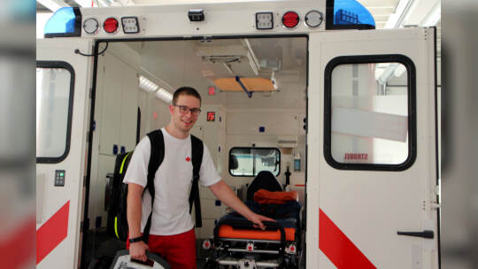 Philipp Weiler absolviert eine Ausbildung zum Notfallsanitäter beim DRK Kreisverband Pforzheim-Enzkreis – und das meistert er mit links, obwohl der 21-Jährige einen dreijährigen Sohn und damit eine große Doppelbelastung hat.