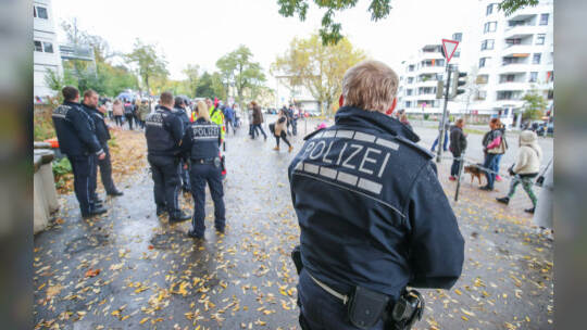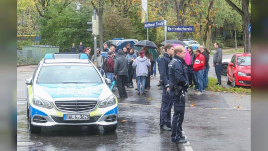 Zahlreiche Polizeiautos eilten zum Einsatzort. Dieses Bild entstand an der Karolingerstraße.