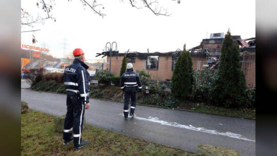 Der Feuerwehr-Großeinsatz am Dienstagabend, der sich auf der Wilferdinger Höhe in Pforzheim bis in den frühen Mittwochmorgen hineinzog, ist bis auf kleinere Nachlöscharbeiten beendet. Jetzt beginnt die Arbeit der Polizei. Im niedergebrannten Schnellrestaurant Burger King an der Karlsruher Straße ermitteln die Brandspezialisten der Kriminalpolizei. Fotos: Seibel