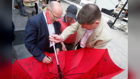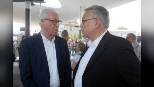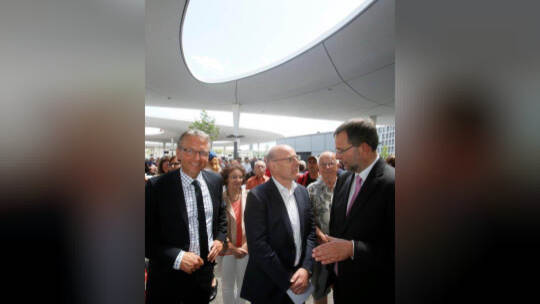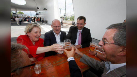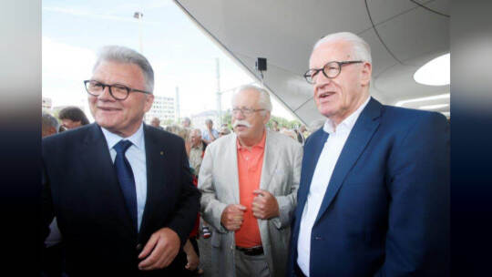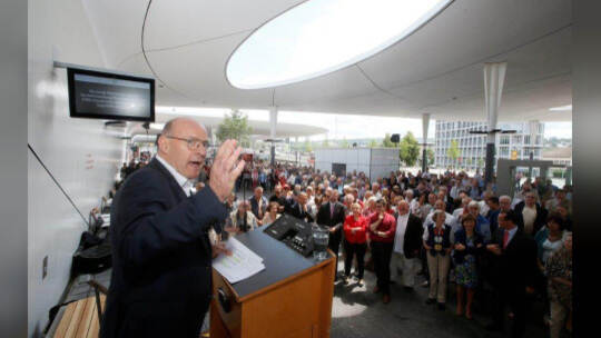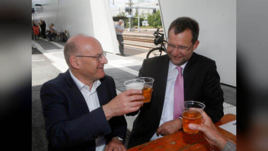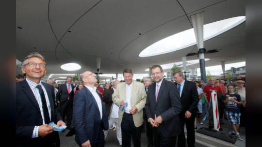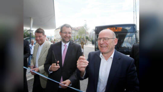Richtungsweisend: Pforzheim feiert den neuen Zentralen Omnibusbahnhof. Landesverkehrsminister und Oberbürgermeister verweisen gleichermaßen auf die große Bedeutung für den öffentlichen Personennahverkehr. Fotos: Ketterl