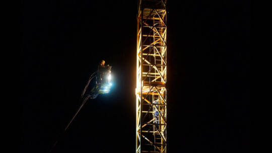 Roofer-Einsatz: Feuerwehrmann muss 45-Meter-Kran hochklettern