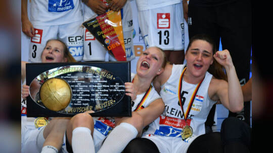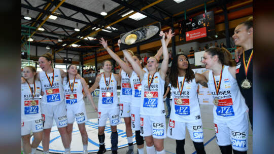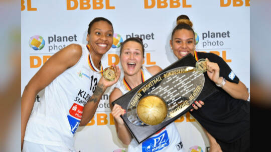 Die Rutronik Stars Keltern haben es geschafft: Am Dienstag haben die Basketballerinnen die deutsche Meisterschaft gewonnen – und das gegen den Seriensieger Wasserburg! Fotos: Hennrich