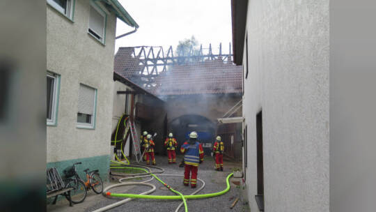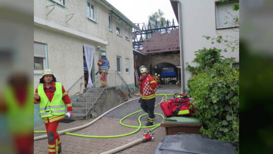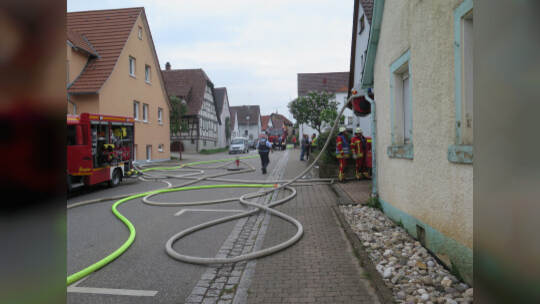 In ganz Knittlingen-Kleinvillars hat es extrem nach Rauch gestunken. Bis nach Ölbronn-Dürrn waren Rauchwolken zu sehen. Die Ortsdurchfahrt über die Hauptstraße war für den Verkehr gesperrt, denn ein Scheunenbrand hat ein Großaufgebot an Feuerwehrleuten in den Knittlinger Stadtteil geführt. Und das aus gutem Grund: Die Scheune ist an zwei Häuser angebaut, Menschenleben hätten in Gefahr sein können. Fotos: Schrader/Leserbilder KV