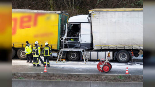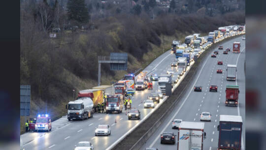 Bei einem Unfall auf der A8 wurde am Dienstagnachmittag eine Person in einem Fahrzeug eingeklemmt. Aufgrund der Bergungsarbeiten ist die Strecke im Bereich der Anschlussstelle Pforzheim-Nord gesperrt worden. Besonders gefährlich: Der Inhalt von einem der Lkws ist hochentzündlich.